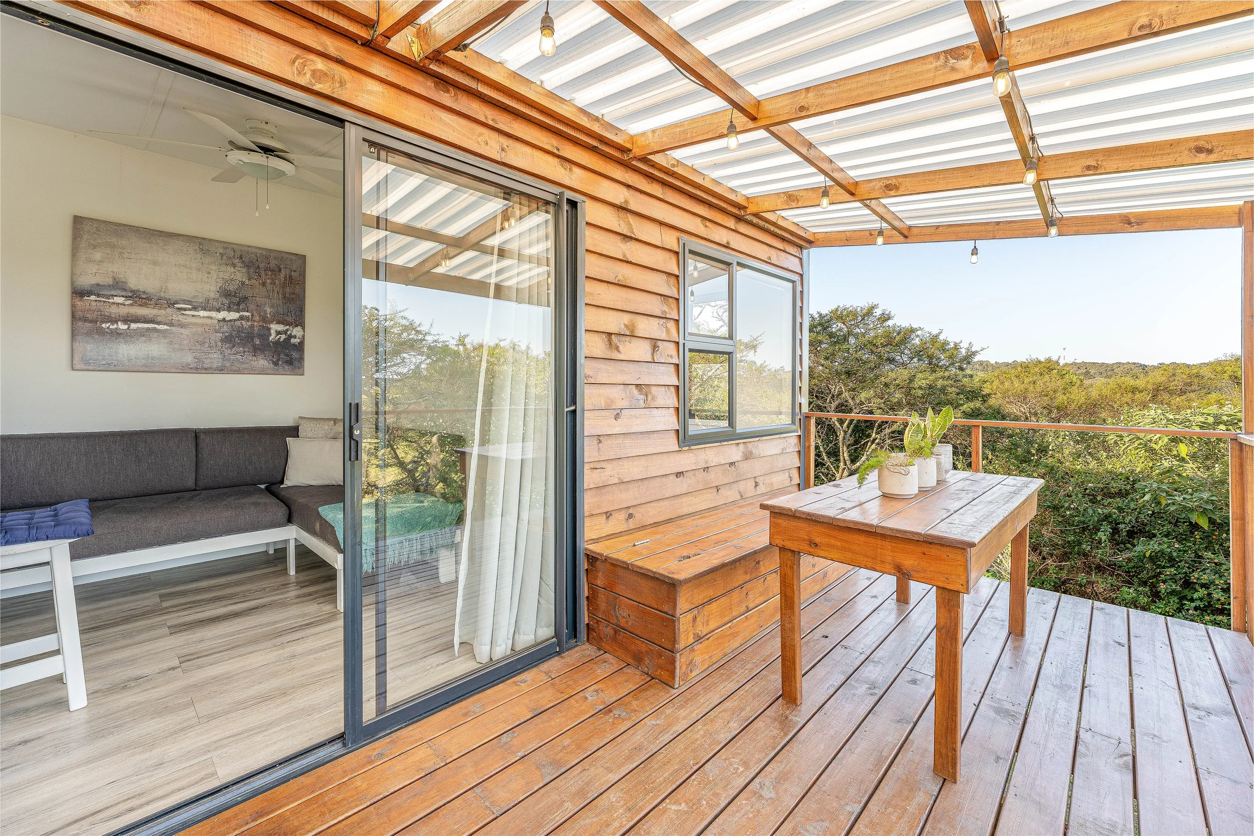 Knysna ist eine kleine Fischerstadt mitten auf der Garden Route und liegt direkt an einem riesigen See. Drum herum nichts als grüne Landschaft und wunderschöne Natur. Etwas außerhalb der Stadt befinden sich die wunderschönen Ferienhäuser des Woodlands Country Retreats. Hier könnt ihr zwischen drei Zimmerkategorien auswählen: Dem “The Nest“ - ein eigenes kleines Tiny Haus für Paare, Der Family Suite und der Couple Suite. wir haben in letzterer genächtigt und haben uns hier wirklich pudelwohl gefühlt. Die Inneneinrichtung ist modern und gemütlich, die Küche ist riesig und bestens ausgestattet und von von der Terrasse hat man einfach einen wunderschönen Blick mitten in die Wildnis. Auf dem Gelände befindet sich ebenfalls ein liebevoll angelegter Garten mit kleinem Teich, ein paar Hühner laufen frei herum und der Haus- und Hofhund Reacher holt sich gern mal bei euch eine kleine Streicheleinheit ab. Wir haben unseren Aufenthalt hier wirklich sehr geliebt und waren froh, dass wir dort 5 Nächte hatten. Eine Nacht in der Couple Suite kostet euch je nach Saison ca. 50€ (Stand: Juli 2023).